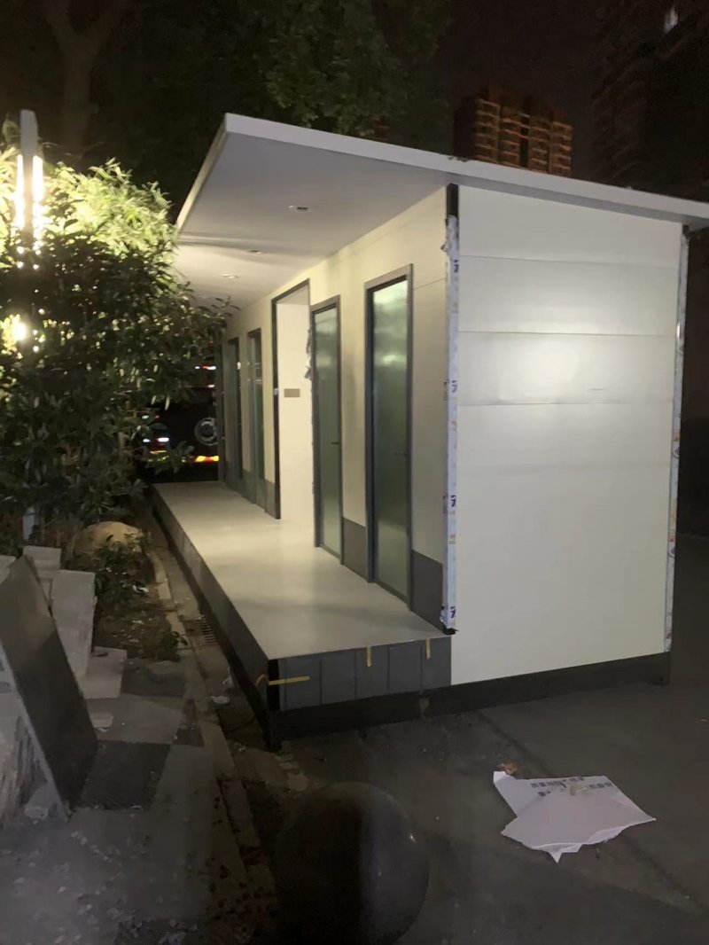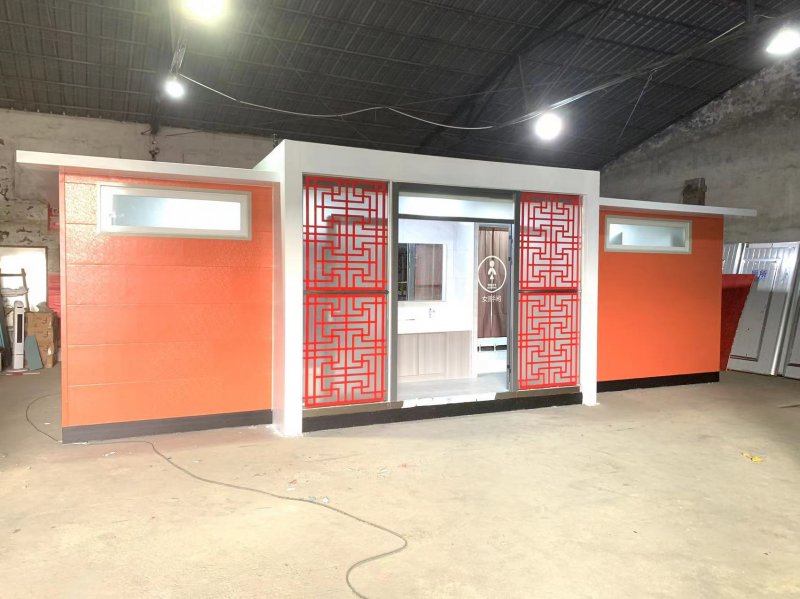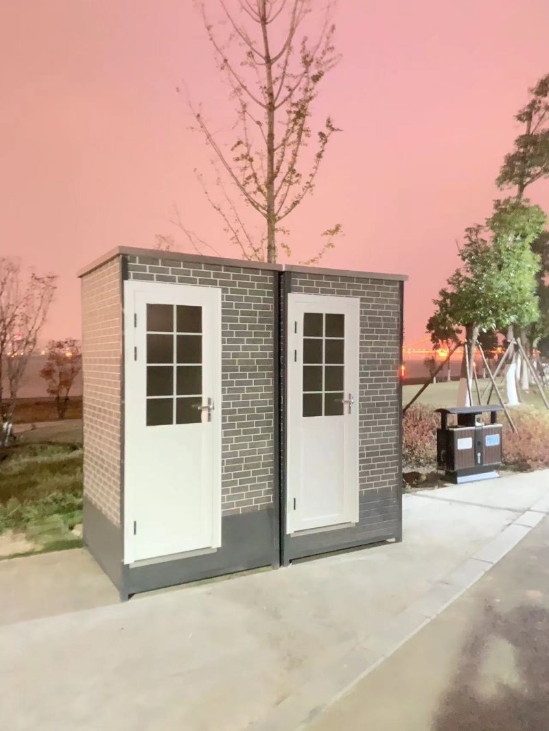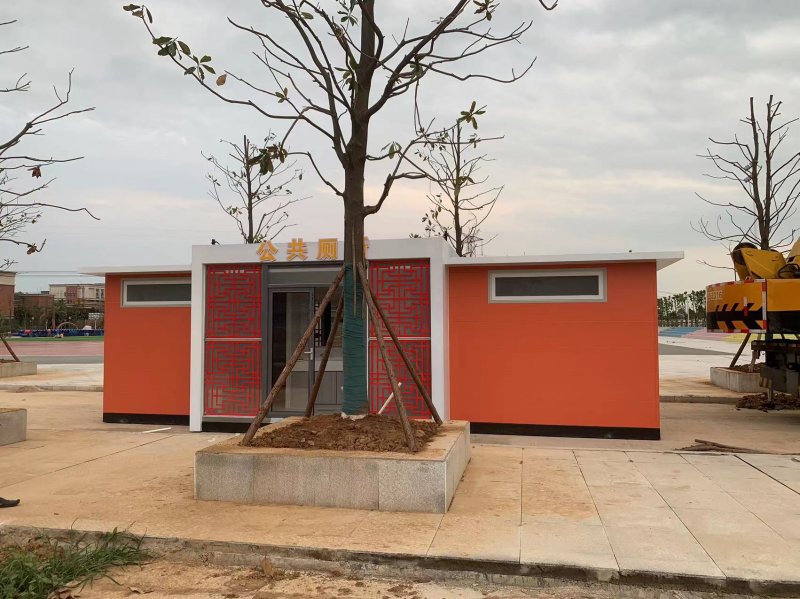 拼裝廁所;在廠里做好各個(gè)廁所部件,再到現(xiàn)場(chǎng)組裝在一齊,適合不易運(yùn)輸?shù)拇笮蛶_@座箱式廁所,女廁5個(gè)蹲位內(nèi)配工具間,男廁2個(gè)蹲位+2小便斗,第三衛(wèi)生間由殘疾馬桶、助力洗手盆和兒童馬桶、兒童洗手盆外加?jì)雰号_(tái)等設(shè)施。廁所前后有窗,通風(fēng)采光,前部走廊裝有屋檐,防雨防曬。此廁所位于公路綠道邊,整體大氣,功能齊全,造型美觀,是一道難得的靚麗景觀!